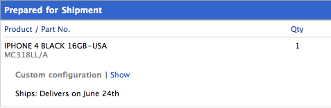 iPhone pre-orderI was a little nervous after all of the iPhone 4 pre-order trouble. After all, what’s the point of pre-ordering a device if you won’t have it on launch day. Lucky for me, Apple has me (and probably most anyone who pre-ordered) covered. My order status has been changed from “not shipped” to “prepared for shipment.”